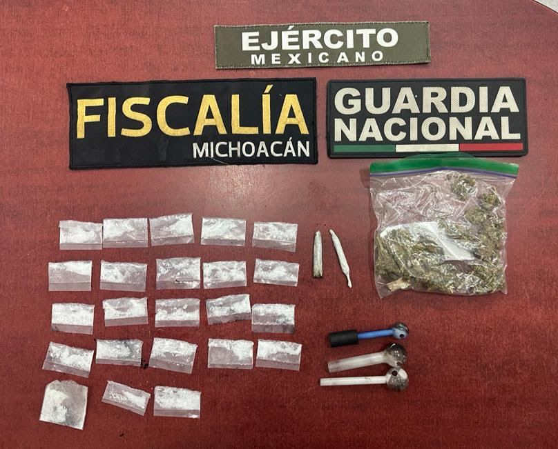 Morelia, Michoacán.- Durante una acción operativa implementada en esta ciudad, con motivo de una investigación por delitos contra la salud, personal de la Fiscalía General del Estado de Michoacán (FGE) detuvo a cuatro personas relacionadas en posibles conductas ilícitas, además aseguró sustancias con apariencia de narcótico.