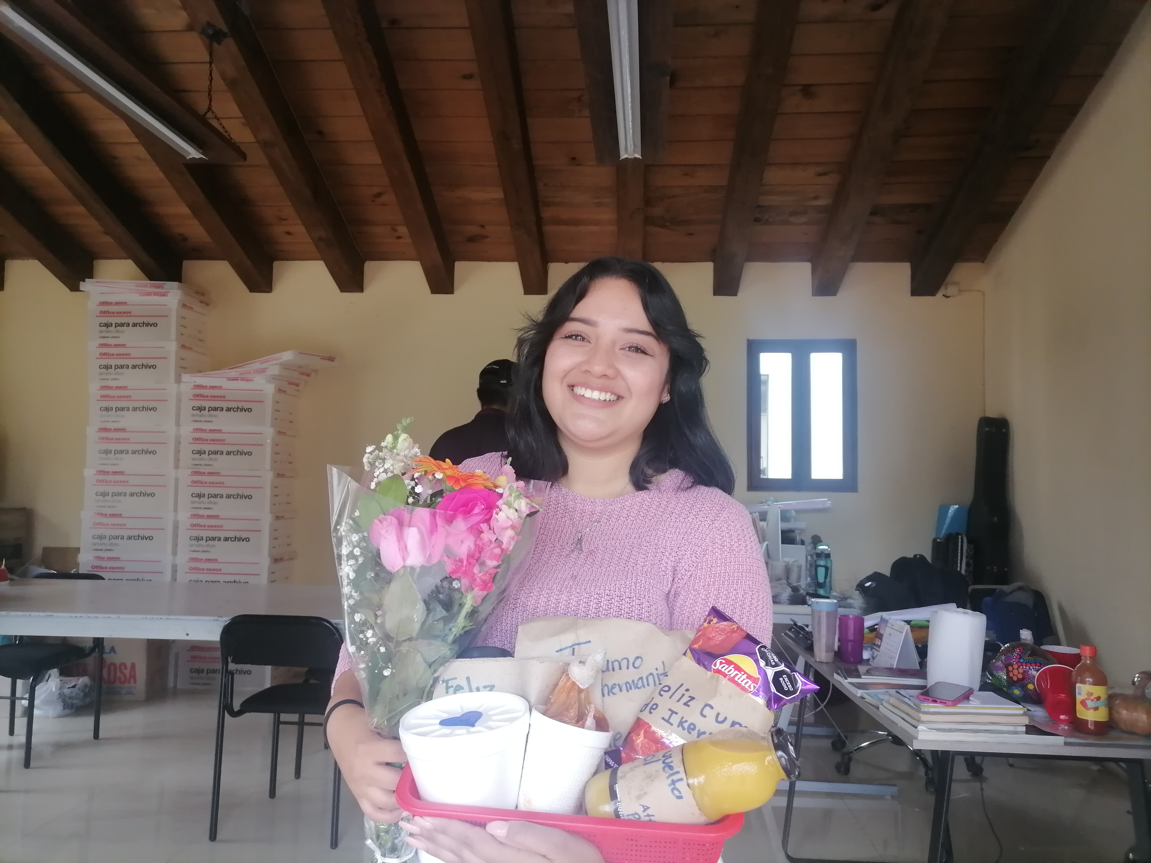 Enviamos una gran felicitación con motivo de su cumpleaños para nuestra estimada amiga Mirna Edith Aguilar Hurtado, quien agregó una velita más a su pastel el pasado martes 25 del mes que está por concluir, comentándonos Mirna que está muy agradecida por la vida, así mismo aprovechó la más que bonita ocasión para enviar saludos a sus papás, a sus hermanas, a su hermano, a sus amigas Jenny y Diana, mencionando que les quiere mucho y desea que sigan susmetas. Felicitamos a la joven Ana Yoselyn Olvera García quien el pasado miércoles 26 del mes en curso fue sorprendida durante su servicio social por sus 2 hermanas Verónica Elizabeth y Mercedes Fabiola Olvera García, quiénes a través de su cuñado Iván y de su sobrino Iker Mateo le hicieron llegar un ramo de flores, un desayuno y sus mañanitas con motivo de su cumpleaños número 22, sintiendo Ana gran emoción y comentándonos qué este gesto le hizo sentir muy feliz y qué agradece a la vida en general por todo lo que le ha regalado y las experiencias que le han hecho crecer.